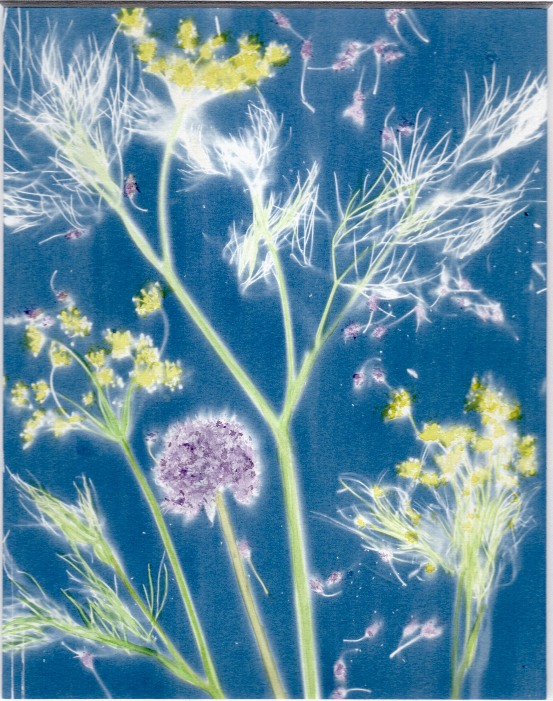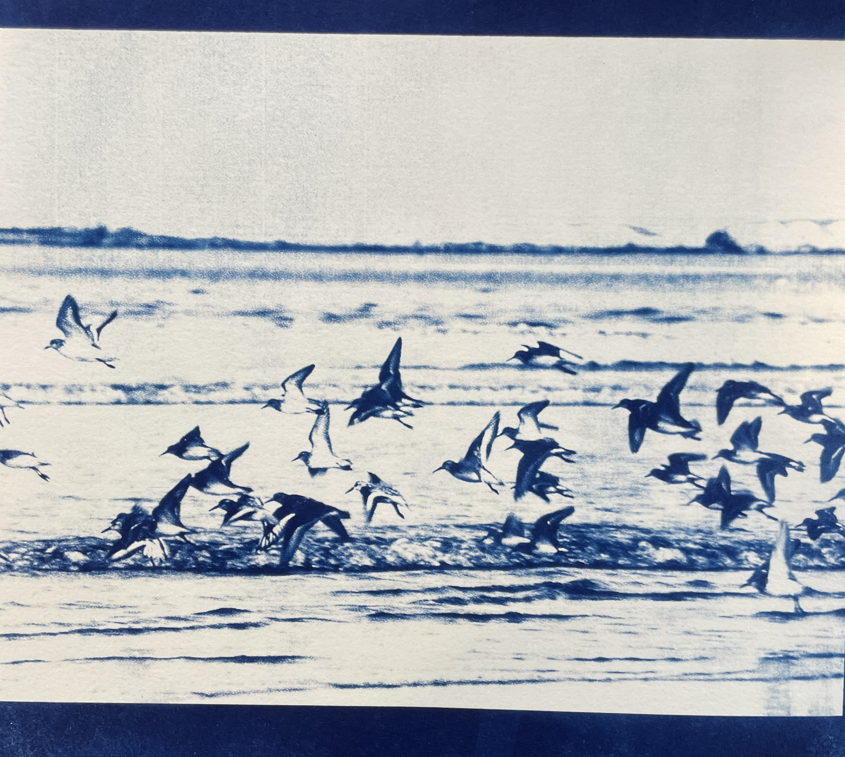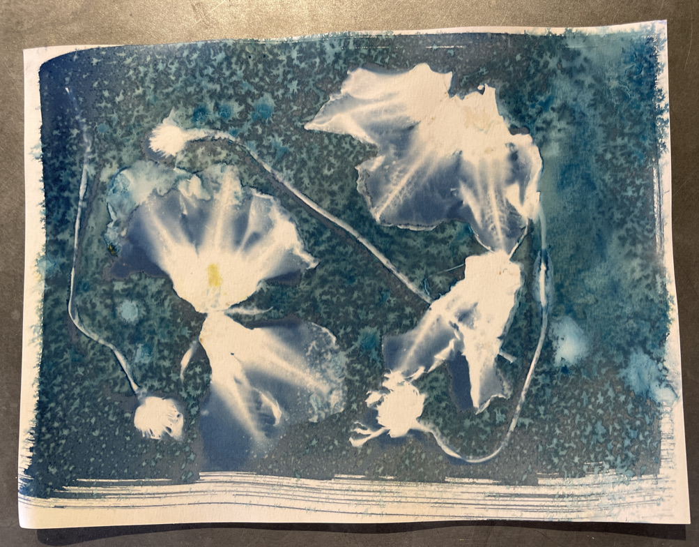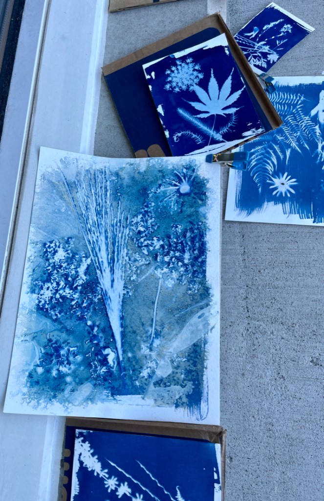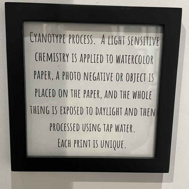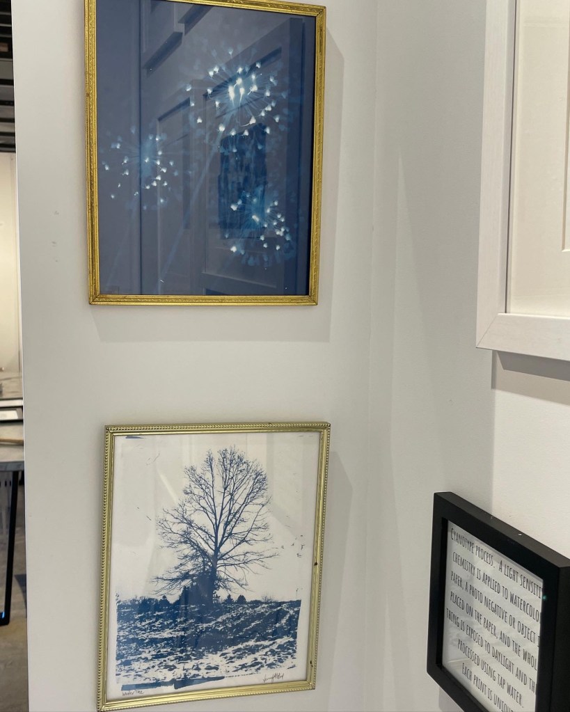 Cyanotypes look better in white, gold frames or mounted on wood panels–